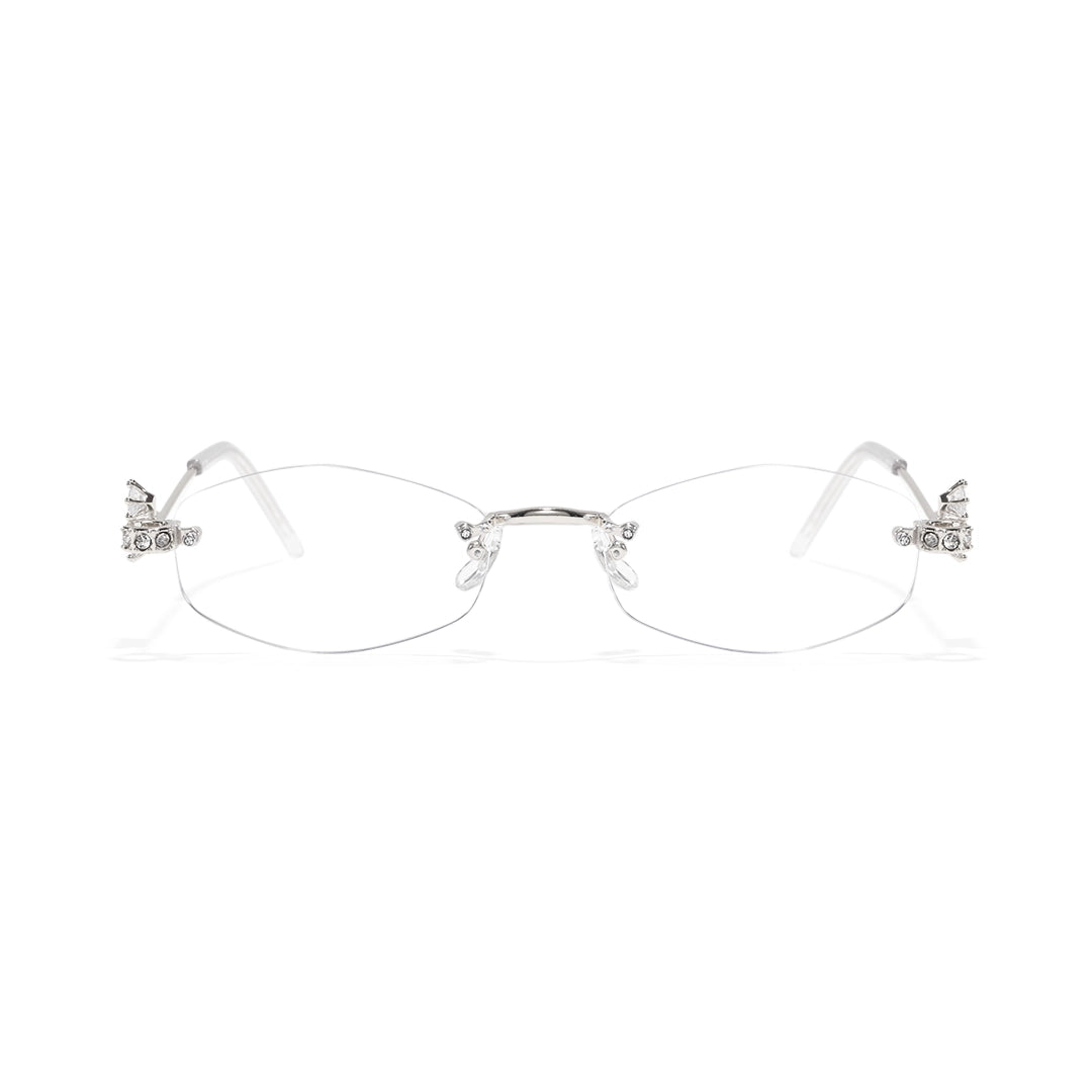 Spotlight Stylish Silver Rimless Eyeglasses With Rhinestone Accents