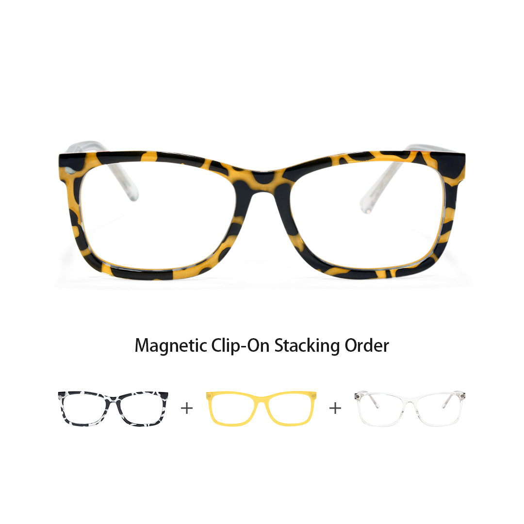 Elisha Rectangle Magnetic Prescription Glasses with 5 Toppers