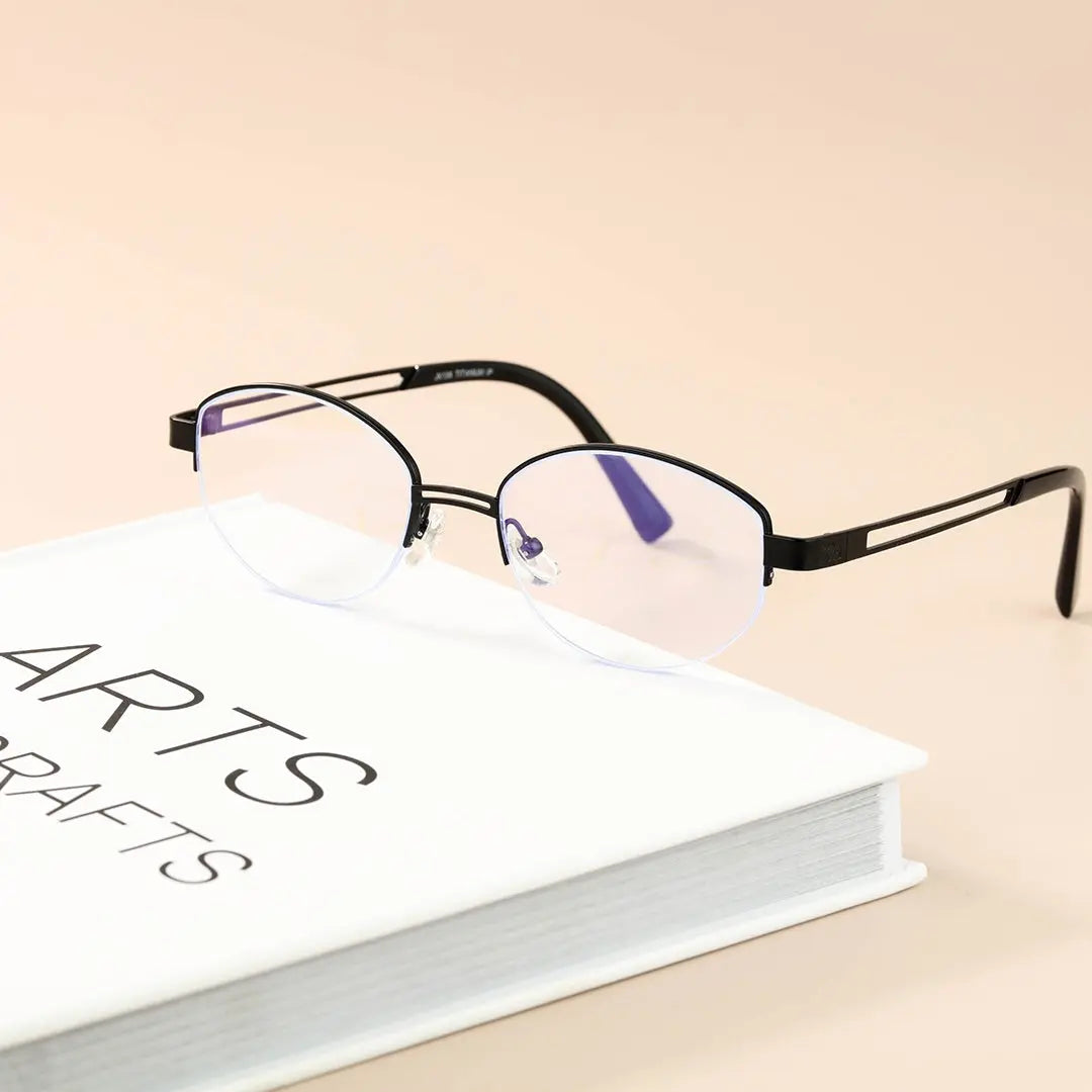 Vivacity Black Oval Titanium Women's Half-Rim Eyeglasses